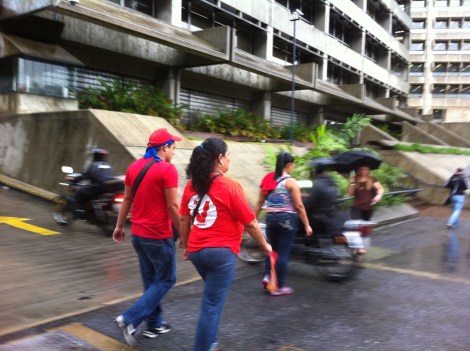 The sky was grey; a few red shirts trickled down the streets and off of busses toward Avenida Bolivar. Motorcycling around city, looking for signs of life and fiesta as there had been on Sunday for Capriles (see “Hay un Camino” for further details), there were only wet, dour faces.